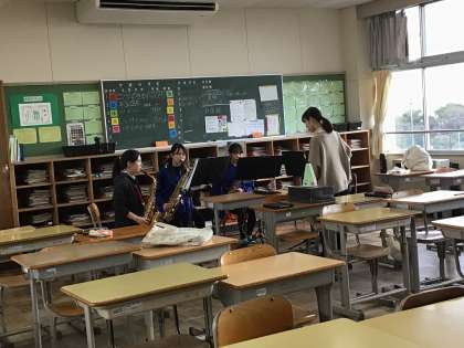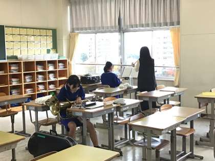 吹奏楽部の様子です。パートごとに各部屋に分かれて練習をしていました。