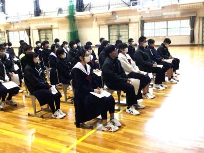 豊田市役所の子ども家庭課の職員が来校し、3年生に「自分の体と心を知る」のテーマで、思春期の気持ちの変化、体の変化などで心が不安定になったときの対応について、具体的に話を行いました。また、「好きなことをする」「体を動かす」ことなどが、心のコントロールにつながる話もあり、生徒にとって参考になったと思います。今日学んだことを今後の生活にいかしていきましょう。