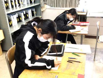 31学級は、美術の「創作文字『風』」の授業の様子です。完成に向けて集中して取り組んでいました。
