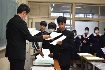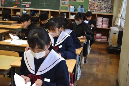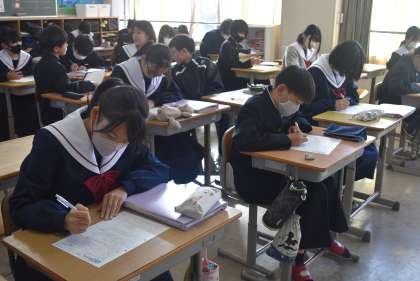 後期中間テストが終わりました。前期の通知表の結果を振り返り、苦手教科を克服しようとがんばる生徒の姿が多く見られました。2年生の後期は、少しずつ進路について意識し始める時期でもあります。目指す進路が決まっている生徒も、まだ決まっていない生徒も、まずは自分の成績と向き合いましょう。自分に必要な取組を考え、コツコツと努力を重ねることで、自分の未来を切り開いていきましょう。