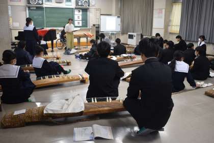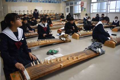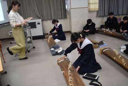 箏の演奏のテストを行っています。