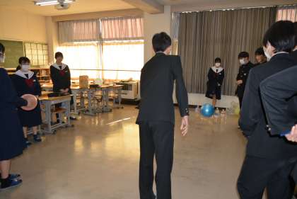 ゴール型運動の試しのゲームをしています。