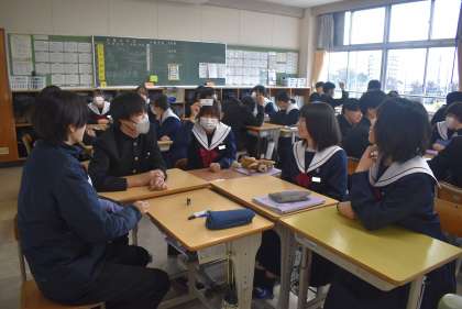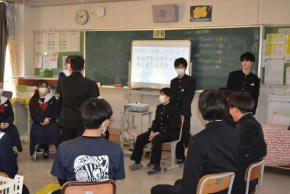 2年生は、来年の3月に行われる卒業を祝う会に向けて、話し合いをしていました。