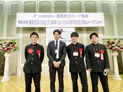26日(日)、本年度、愛知県中学校選手権大会で優勝したサッカー部が豊田市スポーツ協会から表彰を受けました。