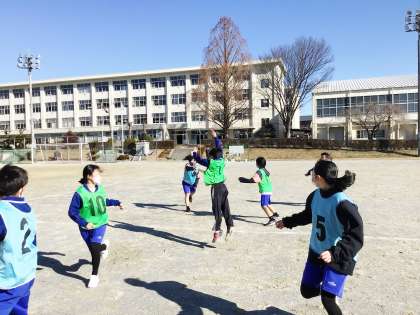 12学級は、体育の「アルティメット」の授業の様子です。試合を行っていました。「パス、パス!」「ナイスキャッチ!」という明るい声が運動場に響いていました。