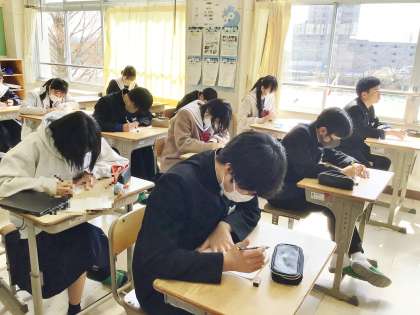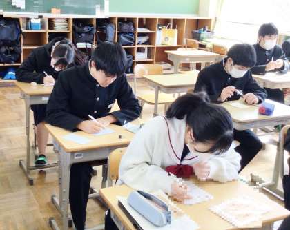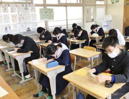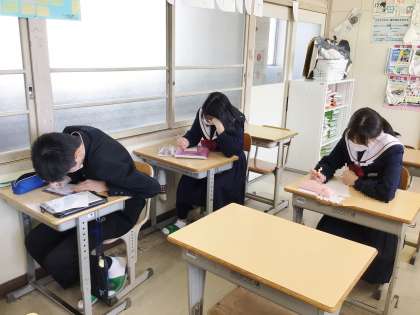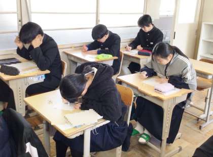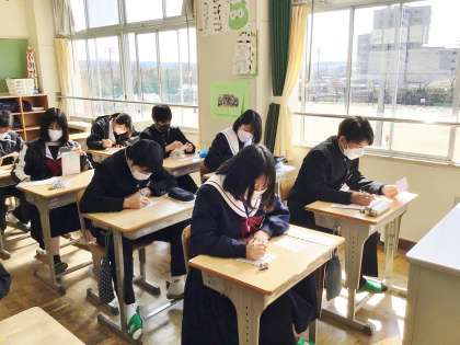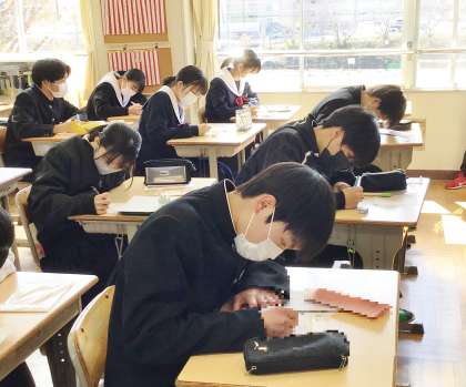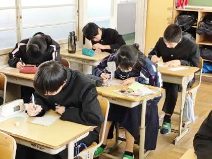 4限に、3年生が20歳の自分自身に宛てた手紙を真剣に書いていました。この手紙は、成人式のときに渡す予定です。読み返したとき、きっと中学校の様々な場面が頭に浮かんでくるのではないかと思います。