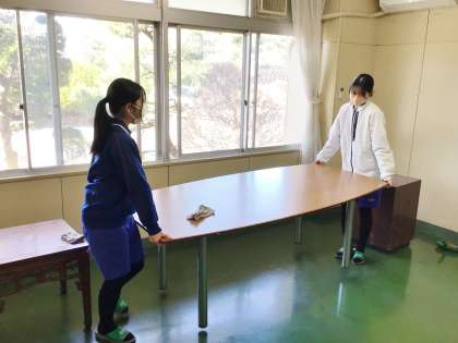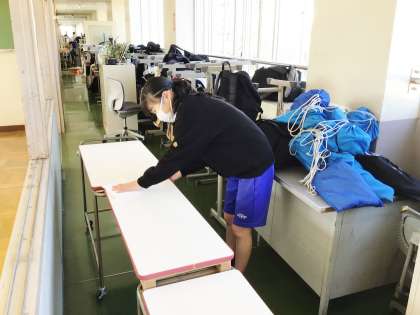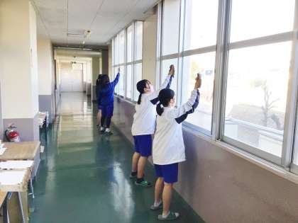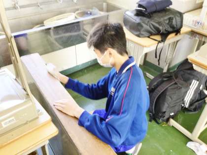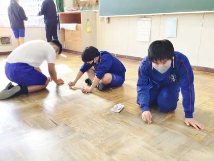 特別教室・3年生教室・体育館等の清掃活動を今までの感謝の気持ちを込めて行いました。清掃を行っている生徒から「愛校活動をしていると、今までの記憶が浮かんできて、何かとても寂しくなります」という声が聞かれました。