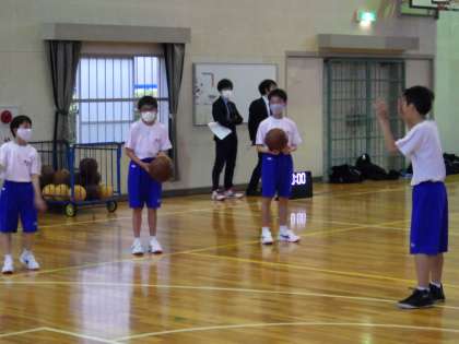 女子バスケットボール部、サッカー部、男子ソフトテニス部の体験入部の様子です。