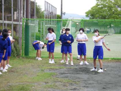 1年生の部活動体験入部が始まりました。今日は、第1希望の体験入部です。1年生は、最初緊張した表情を見せていましたが、2,3年生からの温かいアドバイスを聞き、笑顔が見られるようになってきました。