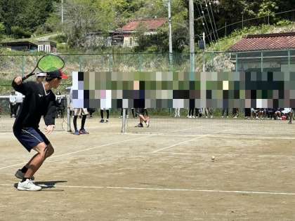 ソフトテニス部男子の試合の様子です。 -