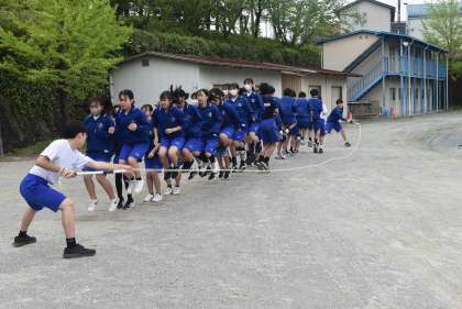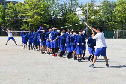 体育祭の練習です。行進の練習と長縄に取り組んでいました。