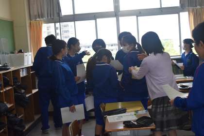 また、各委員会の生徒は、学級で出た質問や意見を、その後に行われた委員会に持ち寄って、話し合いを行いました。全校生徒で前期の生徒会・委員会活動を盛り上げていってほしいと思います。 -