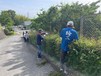 6月3日(土)の梅の実収穫に備え、東門周辺の草刈りと剪定を行い、とてもきれいにすることができました。参加して下さった環境委員、協働本部ボランティア、梅坪おやじ会の皆様に感謝いたします。 -