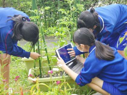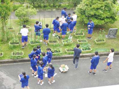 31学級は、技術の「栽培実習」の授業の様子です。立てた支柱に成長した夏野菜の茎を紐で丁寧に何か所も結び、風などで倒れないようにしていました。(台風2号も現在接近しています)大切に育てていきたいという気持ちを生徒の表情から感じ取ることができました。また、学習用タブレットで写真を撮りながら、成長の記録を確認していました。