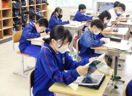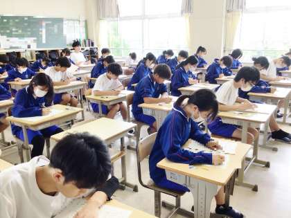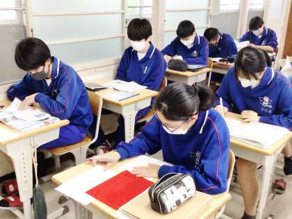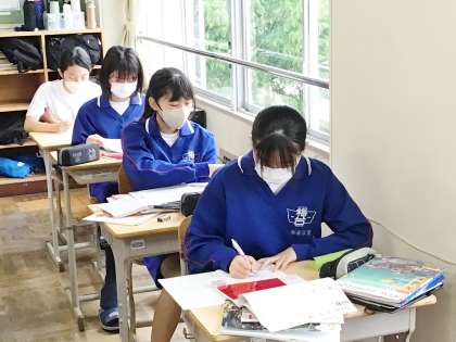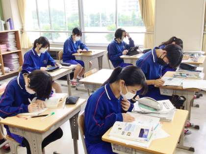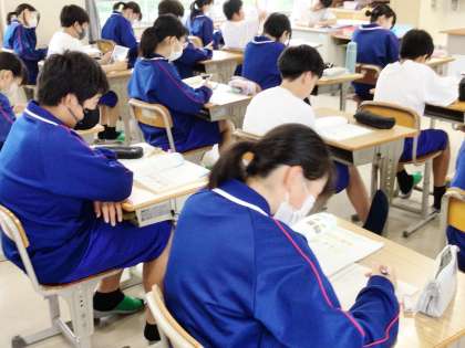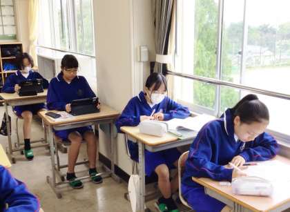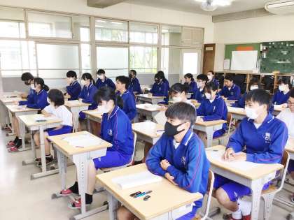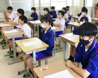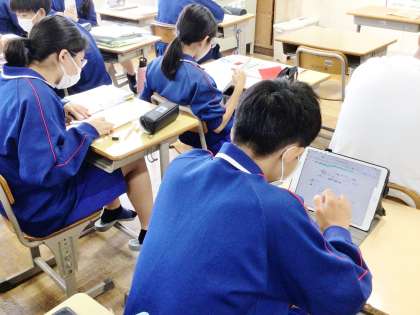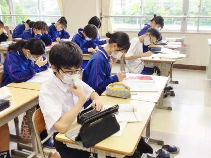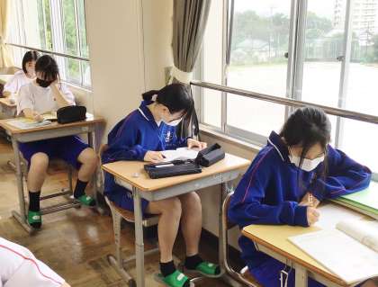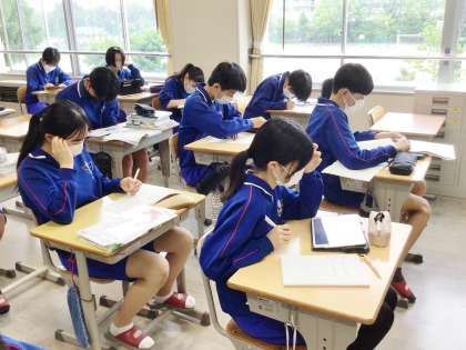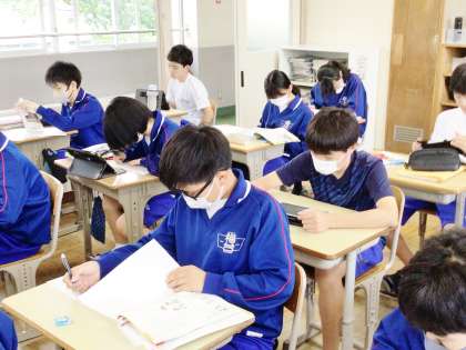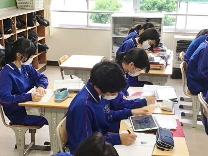 前期中間テスト2日目です。朝の時間を使って、キュビナの問題を解いたり、復習プリントで確認したりと、集中してテスト勉強を行っていました。
