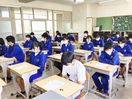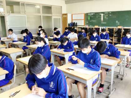前期中間テスト開始直前の21学級の様子です。(一番下の写真は開始直後の様子です)