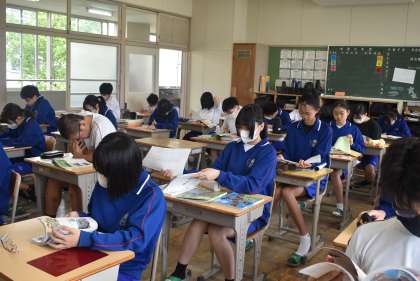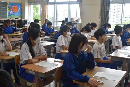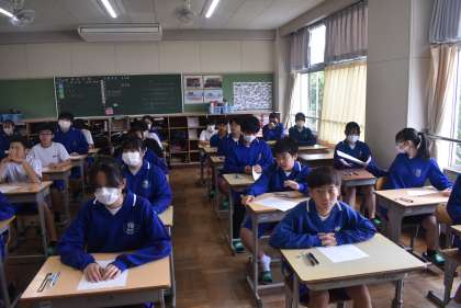 13学級の前期中間テスト開始直前の写真です。