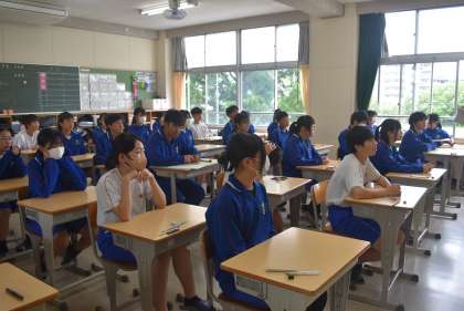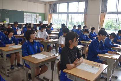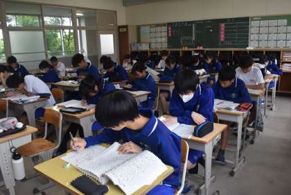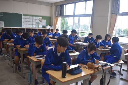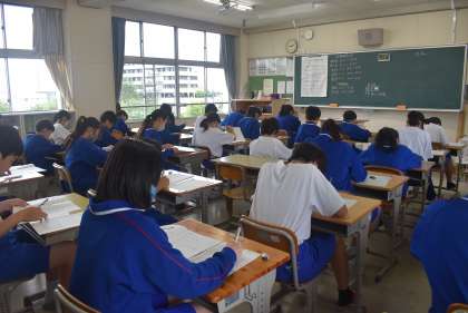32学級の前期中間テスト開始直前の写真です。