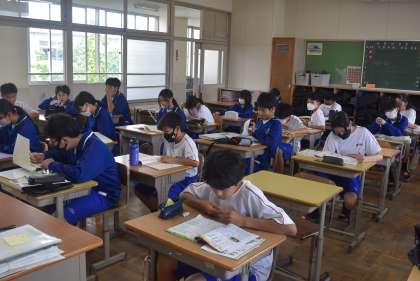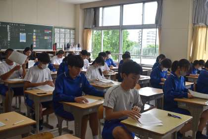 11学級の前期中間テスト開始直後の写真です。
