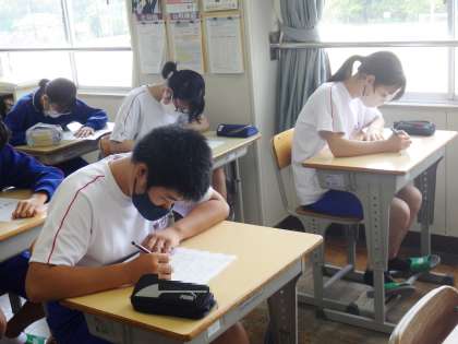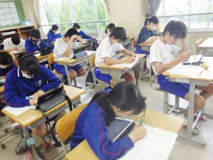 3年生の朝の学習の様子です。生徒は一言も発することなく、キュビナの問題を中心に集中して学習を行っていました。7月13日(木)には、第1回学習診断テストが行われます。進路を考える上で大切なテストです。先日、登校の際に「目指す学校は決まっているの?」と聞くと、「決まっています。合格に向けて今頑張っています」と返ってきました。学習診断テスト、目標の点数に向けて頑張れ!