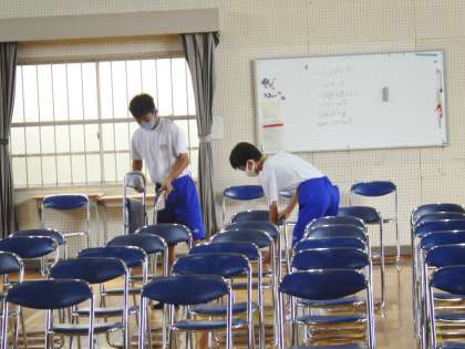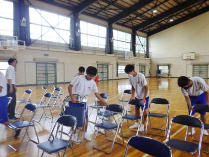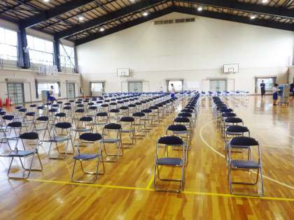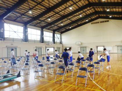 高校説明会で使用する体育館の準備ボランティアを3年生から募ったところ、多くの生徒が参加しました。参加した生徒は、自分たちから積極的に動き、あっという間に会場準備が完成しました。参加してくれた自立心溢れる3年生の皆さん、ありがとうございます。