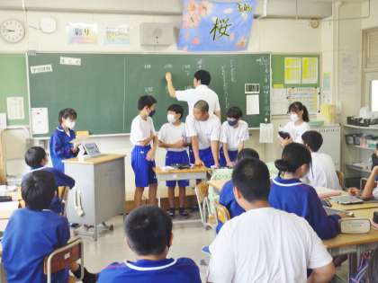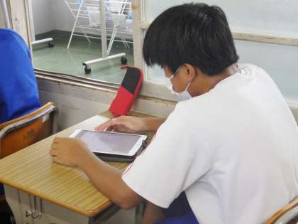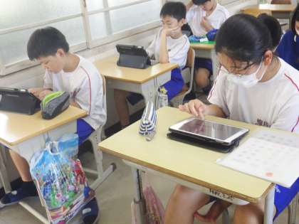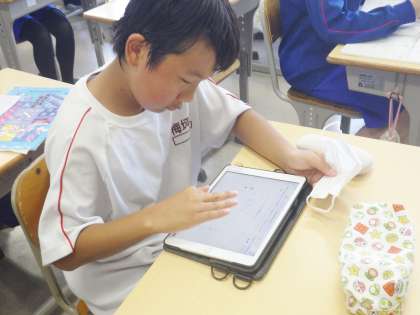 1年生の朝の学習の様子です。キュビナの問題を中心に集中して学習を行っていました。入学して3か月が経ちました。落ち着いた学校生活を送り、前向きに学習に取り組めていることがこの姿勢からも感じ取ることができます。