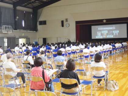本日、高校説明会(公立高校・私立高校・専修学校)を体育館で行いました。公立高校・私立高校・専修学校8校の職員が3年生と1〜3年生の保護者(希望者)に説明を行いました。それぞれの学校の説明から、今後の進路選択についてより具体的に考えることができればと思います。