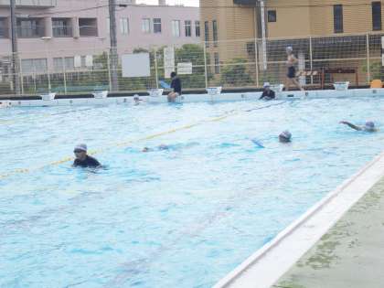 11学級は、体育の「水泳」の授業の様子です。ビート板を使って、クロールの練習を行っていました。「ビート板を使ったら25m泳げた!」「ビート板なしで挑戦してみたら25m泳げた!めちゃうれしい!」という声が聞こえてきて、嬉しくなりました。