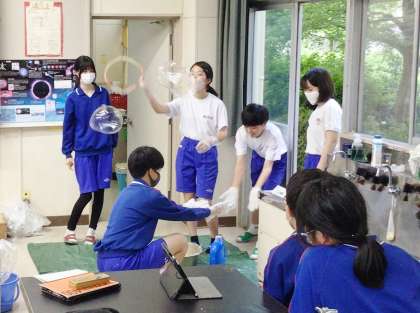 情報科学部の活動の様子です。情報科学部は、7月4日(木)の文化部発表会で様々な実験を披露する予定です。発表するグループごとにリハーサルを行っていました。