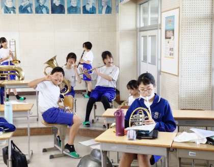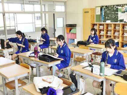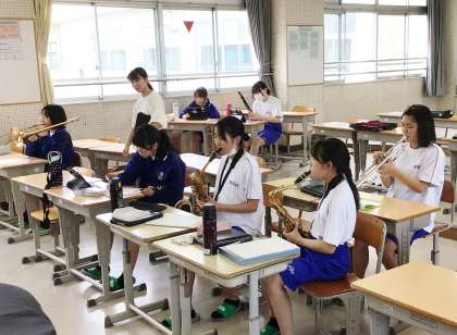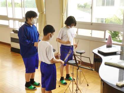 吹奏楽部の活動の様子です。パートごとに分かれて練習を行っていました。