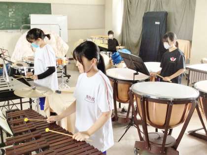 吹奏楽部は、7月4日(木)の文化部発表会で演奏を行います。披露する曲は、「七彩丹霞〜東洋のグランドキャニオン〜」「タイムパラドックス」「学園天国」です。3年間の想いが詰まった演奏をお聞きください。