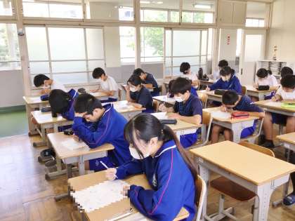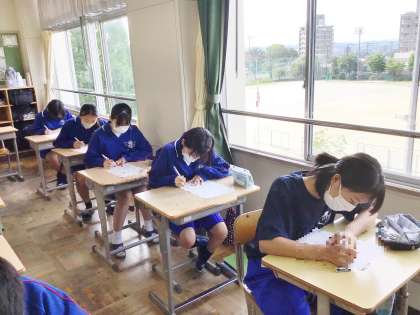 23学級は、理科の「化学変化と物資の質量」の単元テストの様子です。一問一問集中して解いていました。