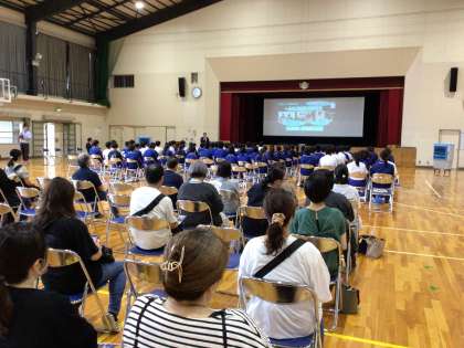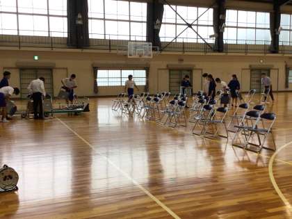 この会に先立ち、3年生の有志の生徒が少し早く登校して、会場の準備を行いました。ありがとうございました。 -