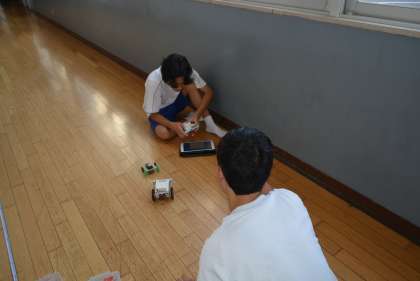 第2理科室では、情報科学部が活動を行っています。8月5日に出場するT-tic(Toyota techno idea contest)に向けて準備を行っていました。