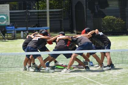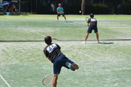 男子ソフトテニス部の昨日の団体戦の写真です。 -