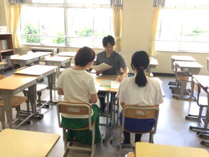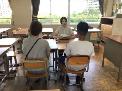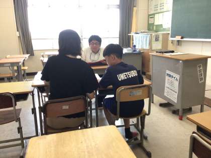昨日に引き続き、今日も個別懇談会が行われています。外は大変暑いですが、教室内はエアコンが利いていて快適です。ご来校ありがとうございました。