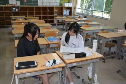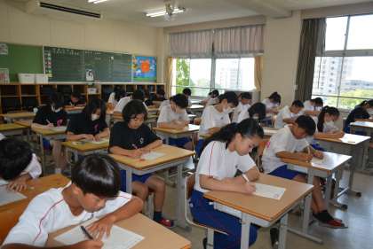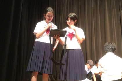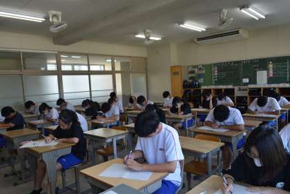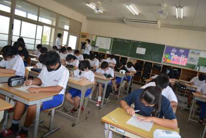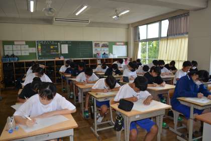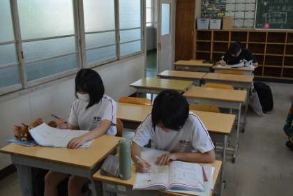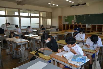今日は1・2年生の出校日です。久しぶりの教室で級友や先生の顔を見て、話が弾んでいる生徒もいることでしょう。中には、朝の会で夏休みについてのスピーチを行っているクラスもありました。