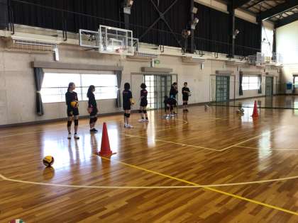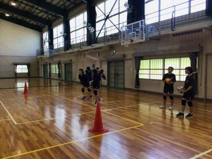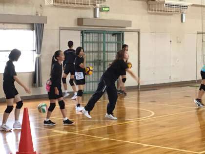 体育館ではバレーボール部が活動を行っています。取材に行ったときは、サーブの練習をしていました。地域部活動指導者の方が熱心に教えてくださっています。