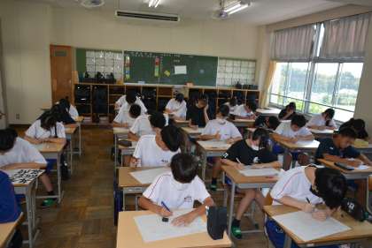 2年生の様子です。数学の小テストを行っていました。