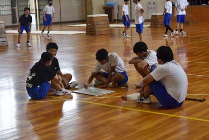 グループに分かれて練習や話し合いをしています。