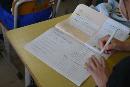 これまでの学習の成果を確認しています。