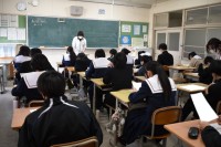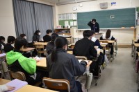 今日から学年末テスト1週間前になり、テスト週間と教育相談週間が始まりました。帰りの会が終わった後、一部の生徒が残って、事前に答えたアンケートをもとに担任の先生と相談活動を行っています。