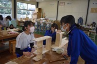 13学級の技術の授業の様子です。今週は時間割変更があったため、火曜日に引き続き、木工作品の製作をしています。仕上げの段階に入っている生徒もいます。