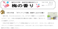 令和8年度 「ボランティア活動」登録申し込みのお願い 梅花の候、みなさまにおかれましては、ますますご健勝のこととお喜び申し上げます。また、日頃は本校地域学校共働本部の活動にご理解とご協力をいただき感謝...