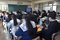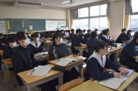 今日から学年末テスト1週間前になり、テスト週間と教育相談週間が始まりました。帰りの会が終わった後、一部の生徒が残って、事前に答えたアンケートをもとに担任の先生と相談活動を行っています。