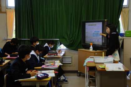 <写真中>表などは、手元の紙媒体(教科書など)のほうが見やすかったりするのですが、「この部分の〜」などピンポイントで視点を伝えたいときに、モニタはやはりとっても便利です。生徒が「え?どこ?」とはならないですもんね。