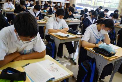 <写真下>一見、ICTを使っていないように見える写真。このとき、モニタからデジタル教科書の「範読」音声が流れています。プロの朗読音声です!(先生たちも負けはしませんが…多分)