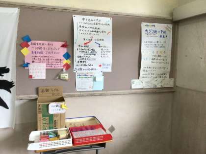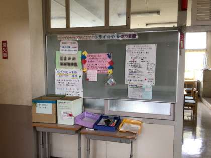 地域学校共働本部からのお知らせが2か所の掲示板に掲示されています。