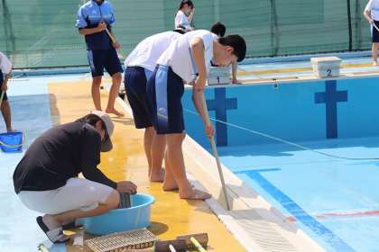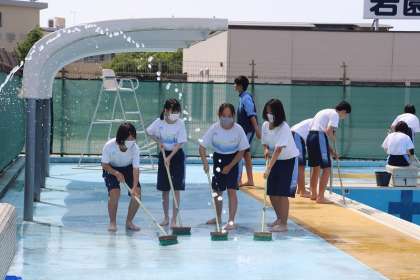 もうすぐ、体育の授業でプールが始まります。全校で協力して、プール清掃を行いました。みなさんのおかげで、プールがとてもきれいになりました。気持ちよくプールの授業を行えますね!