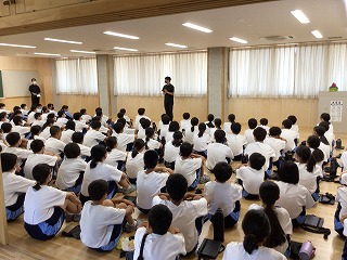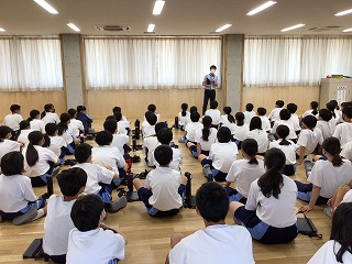 学年の各先生から夏休み前までの生活の振り返り、夏休み中の過ごし方についてお話がありました。